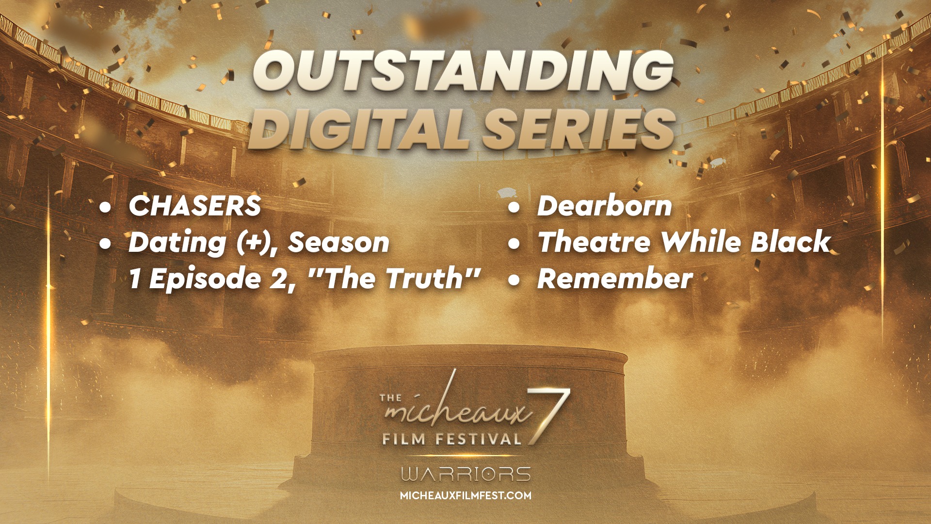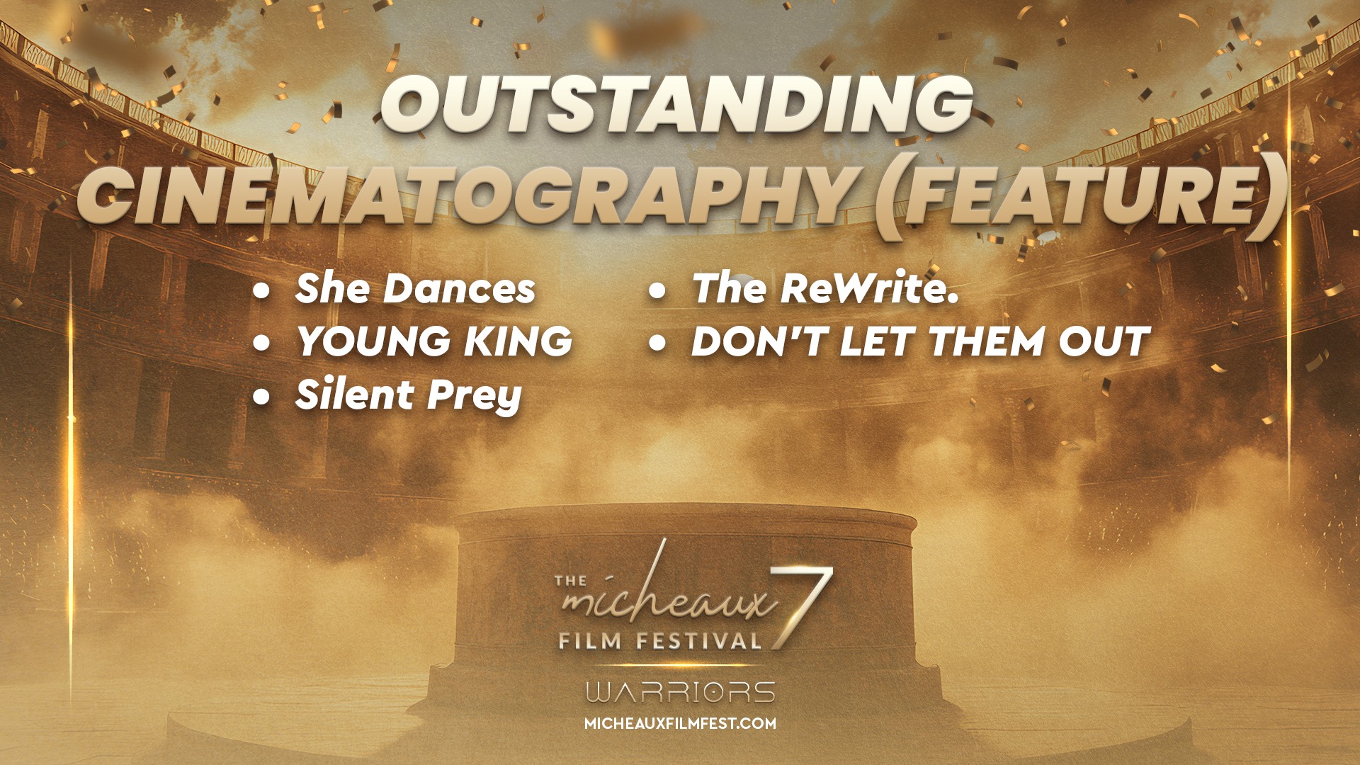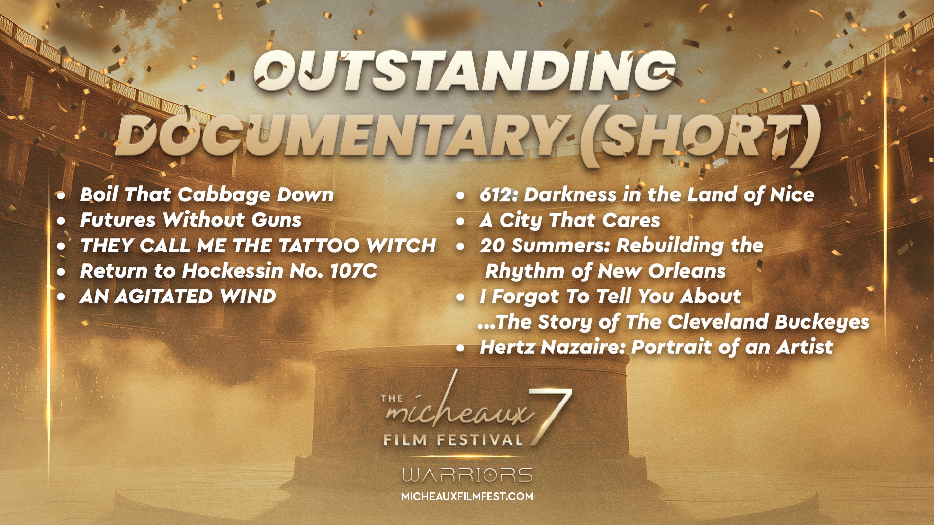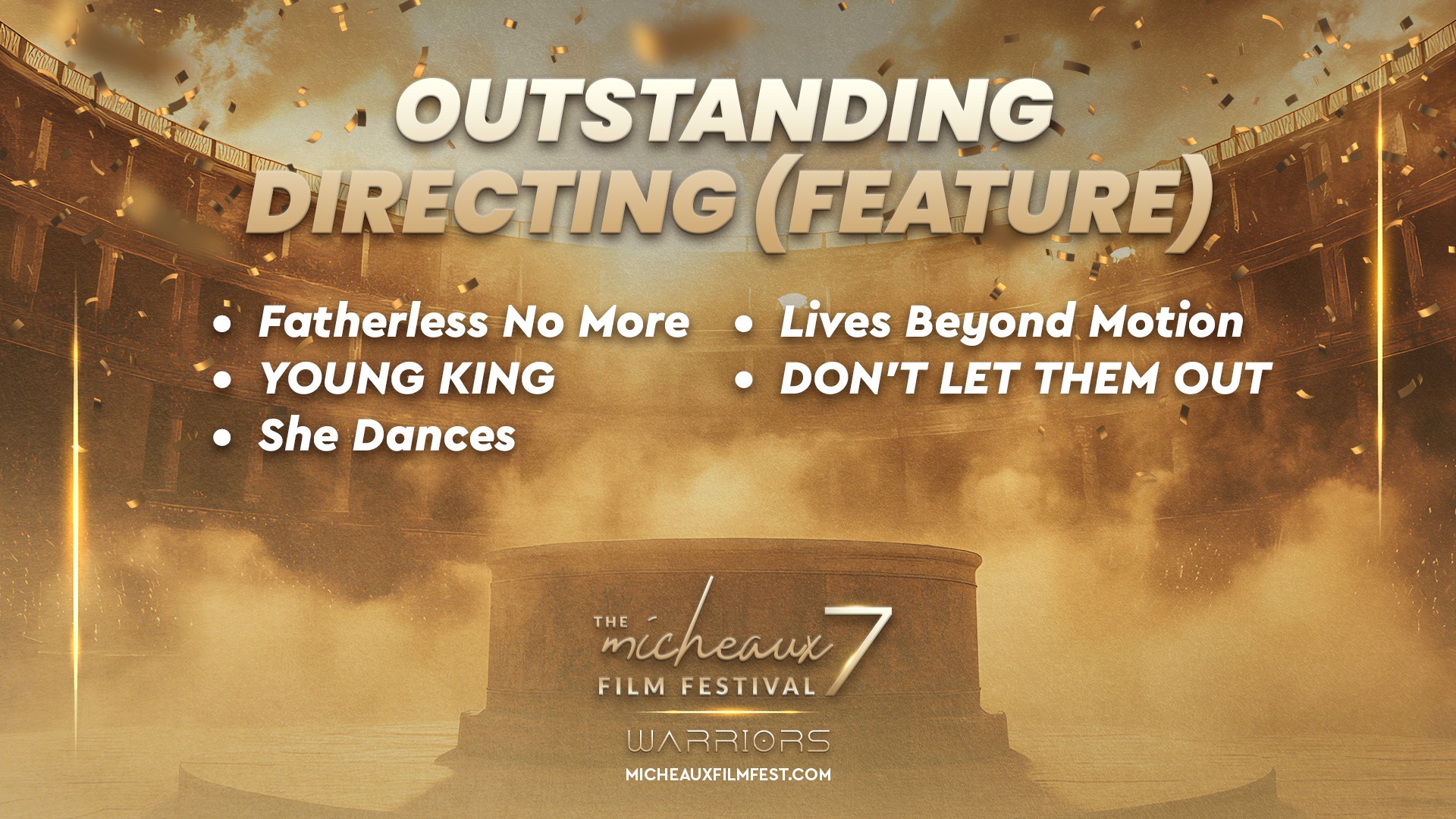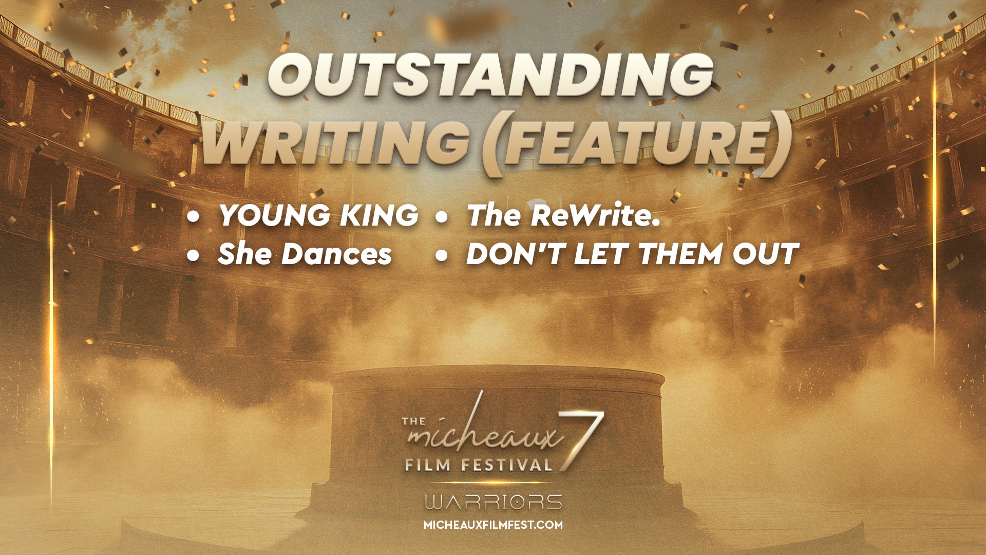 Award 2025 2025 WINNERS 2025 HONOREES 2025 Winners Wednesdays With Gramps | I Know Him So Well Courage Young King Beyond (Mas Alla) Better Life BeforeHand Ivonnah Erskine as “Sara” (Love is Blind) I Thought You’d Never Ask I Hate My Love Life Remember She Dances It’s Dorothy! 20 Summers: Rebuilding the Rhythm of New Orleans Ado Jimmy Jean-Louis as “Mr. Godwin” (Sins of a Father) Lives Beyond Motion The Off-Brands The Ride Missing Rhythms Neither Donkey Nor Horse The ReWrite Belief The Village It Took I’m In Love Audrey Zahn as “Claire” (She Dances) Freddy Ramsey Jr. as “Lynwood” (The Rewrite) The Lord of all Future Space and Time Legend Has It: The Remarkable Rise of Stephen McCain #1 BAD DAD The ReWrite