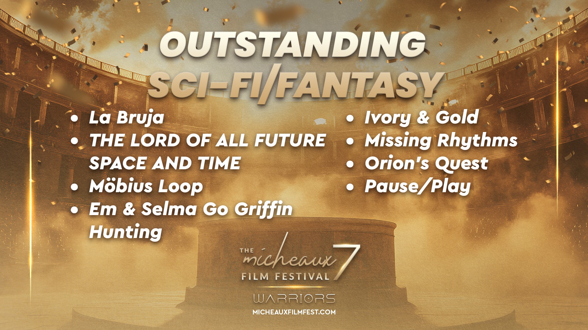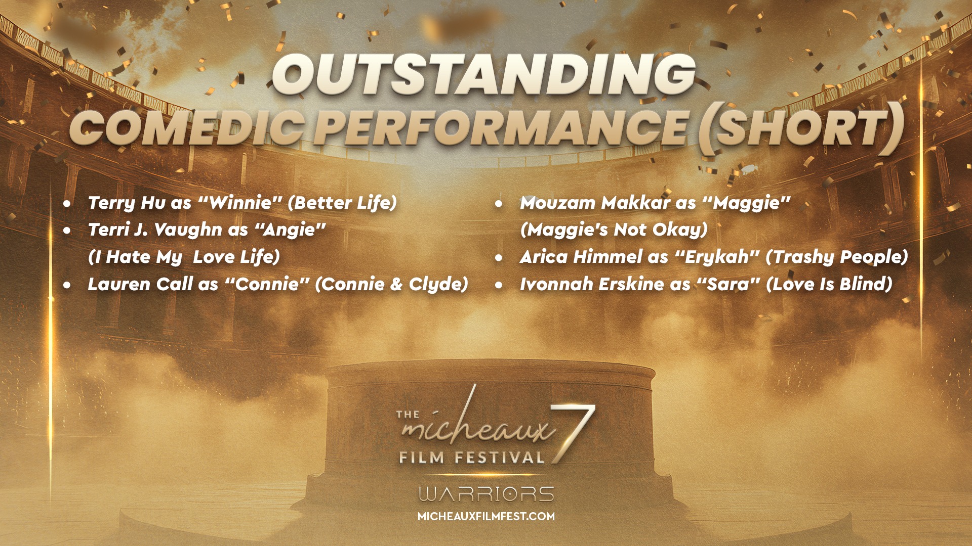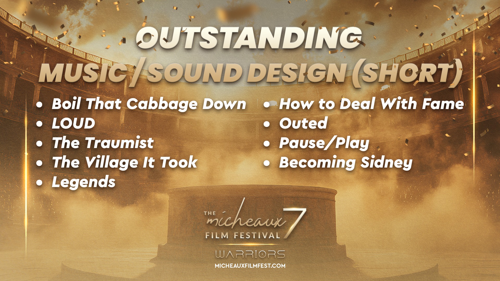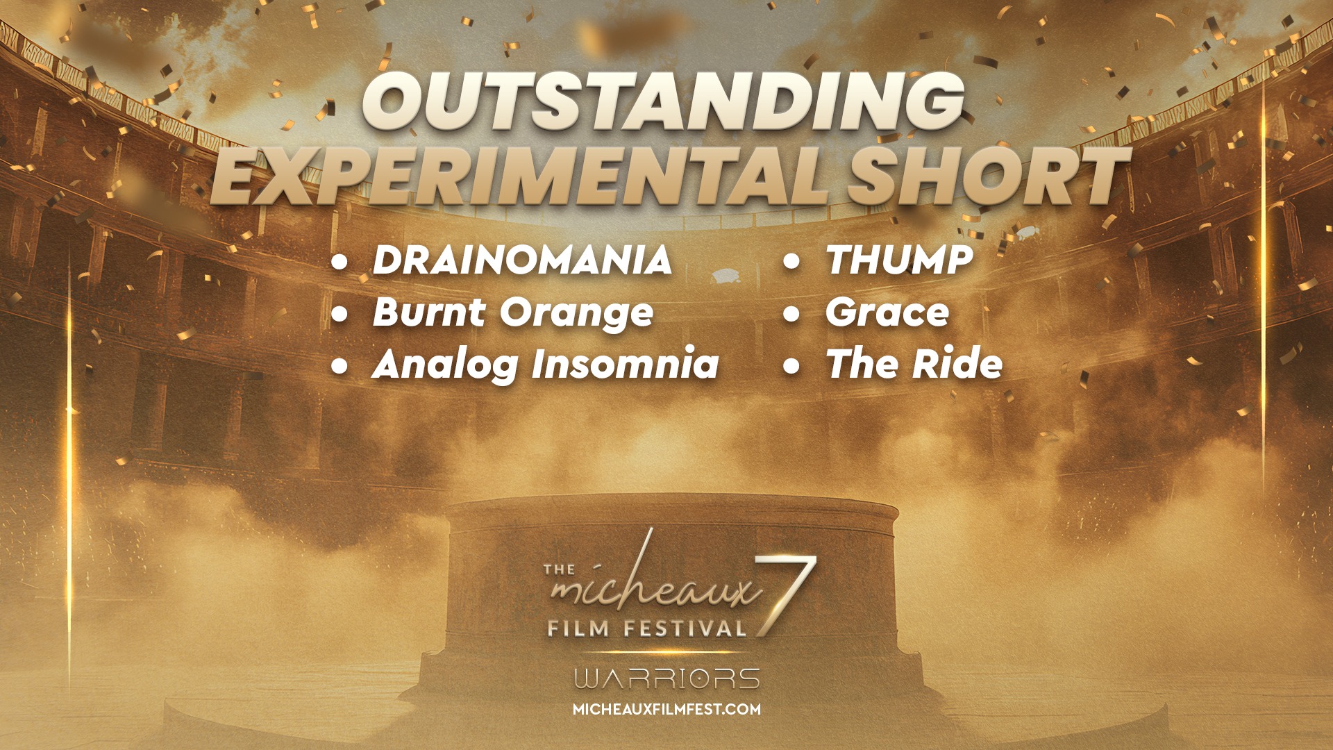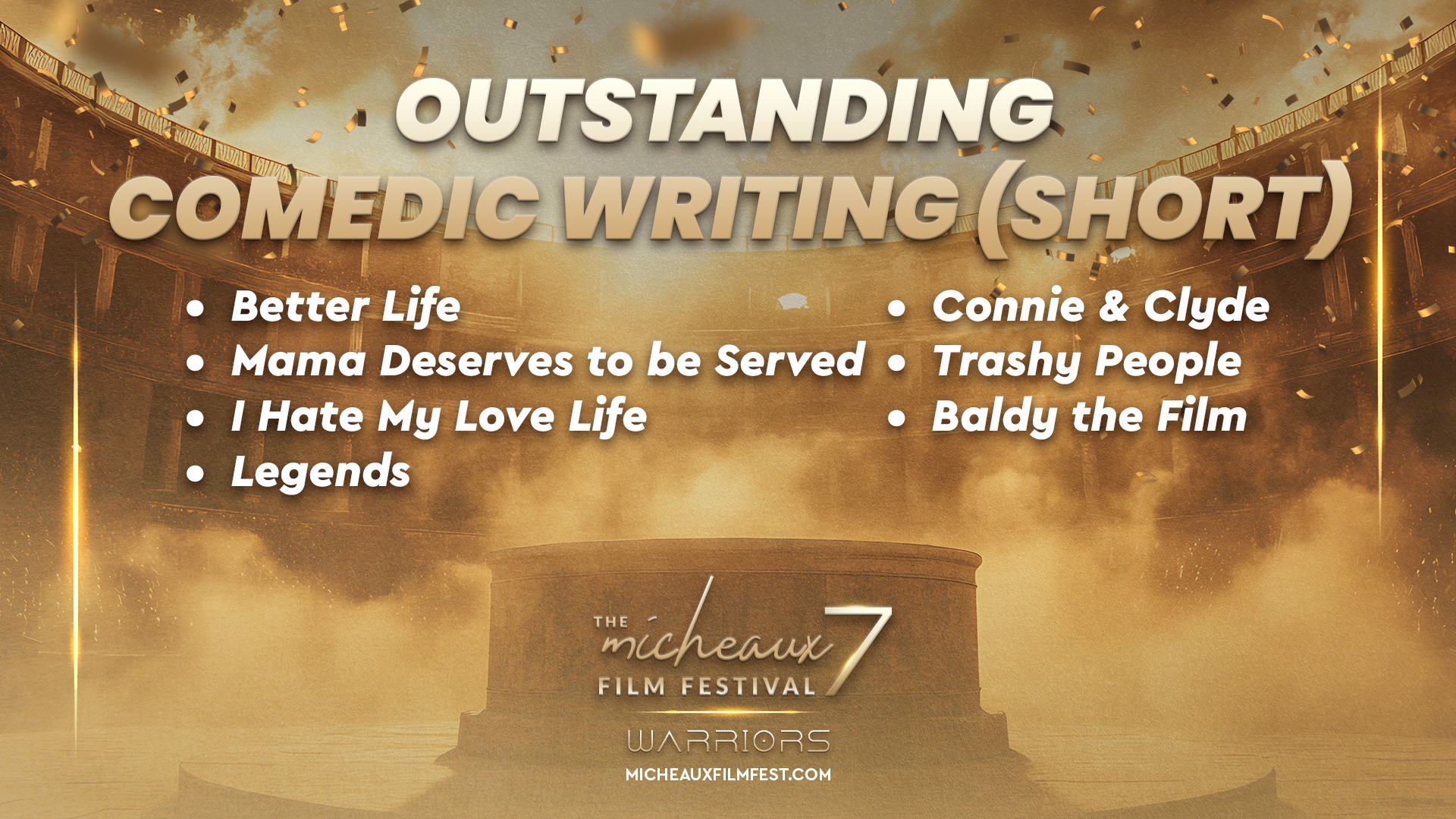 Award 2025 2025 WINNERS 2025 HONOREES 2025 Winners Wednesdays With Gramps | I Know Him So Well Courage Young King Beyond (Mas Alla) Better Life BeforeHand Ivonnah Erskine as “Sara” (Love is Blind) I Thought You’d Never Ask I Hate My Love Life Remember She Dances It’s Dorothy! 20 Summers: Rebuilding the Rhythm of New Orleans Ado Jimmy Jean-Louis as “Mr. Godwin” (Sins of a Father) Lives Beyond Motion The Off-Brands The Ride Missing Rhythms Neither Donkey Nor Horse The ReWrite Belief The Village It Took I’m In Love Audrey Zahn as “Claire” (She Dances) Freddy Ramsey Jr. as “Lynwood” (The Rewrite) The Lord of all Future Space and Time Legend Has It: The Remarkable Rise of Stephen McCain #1 BAD DAD The ReWrite